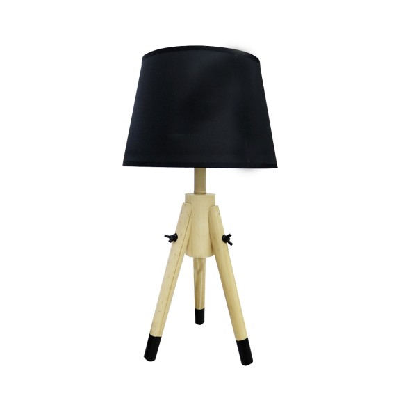 ABAJUR TRIPÉ DE MADEIRA COM CÚPULA EM TECIDO E ESTRUTURA DE METAL 48CM BIVOLT- 2346-PT