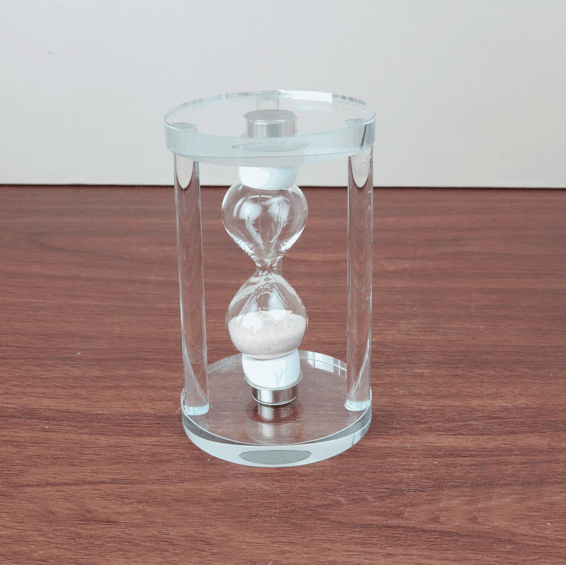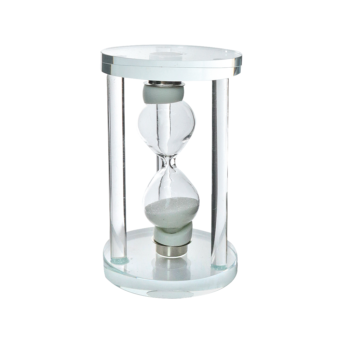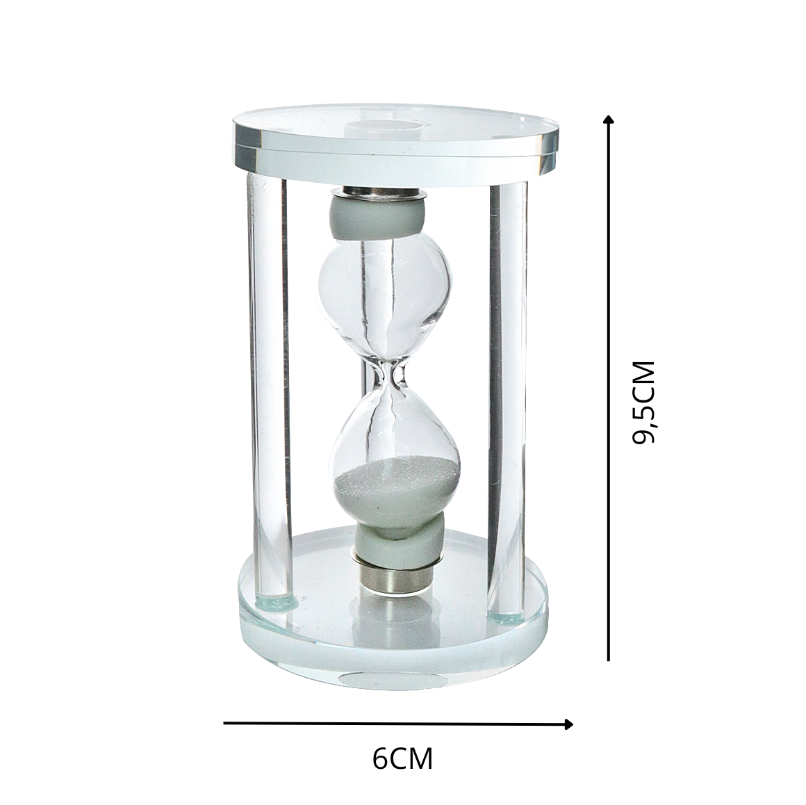 Totalmente produzida em vidro transparente, tanto o corpo quanto a base, a peça permite visualizar a passagem suave da areia, trazendo leveza e equilíbrio à decoração. Um toque de charme para escritórios, salas, quartos ou ambientes de estudo.