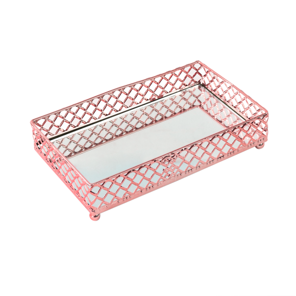 BANDEJA DECORATIVA DE METAL ESPELHADA 20X12,5X4,4CM - 1107-ROSÉ.