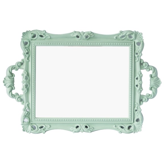 Bandeja com detalhes na alça e em toda a peça. Espelho na base produto ideal para decoração de ambientes diversos.