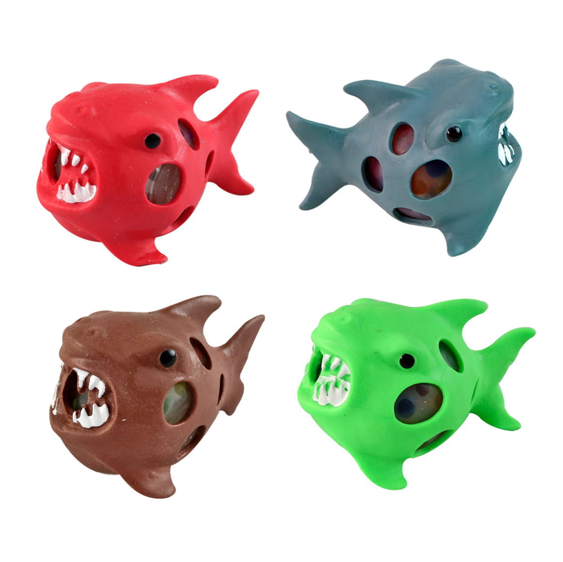 BRINQUEDO TUBARÃO DE PLÁSTICO ANTI-ESTRESSE C/ 4 UNI. - ZD004-UNI