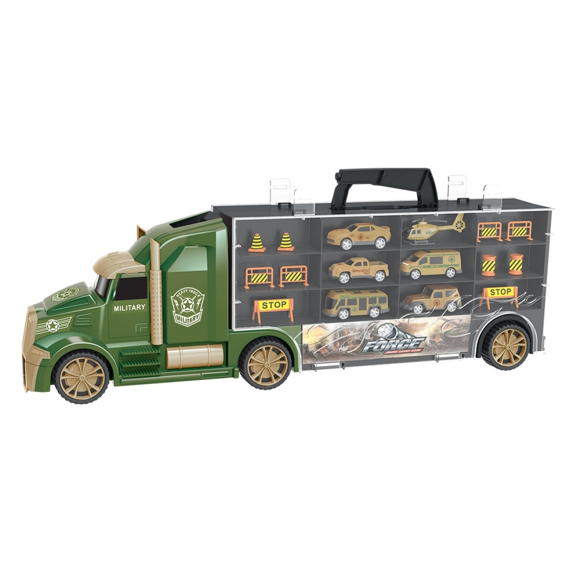O Caminhão Maleta Militar é muito divertido. Possui uma rampa para brincar com os carrinhos e uma alça para levar onde quiser. Tem capacidade para guardar até 24 carrinhos.