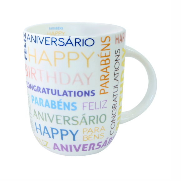 CANECA DE PORCELANA "PARABÉNS OU FELIZ ANIVERSARIO 380 ML - CA18004-B.