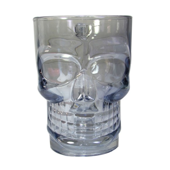 CANECA DE VIDRO PARA CHOPP E CERVEJA CAVEIRA ROCK STYLE AZUL 500 ML - GDR0649