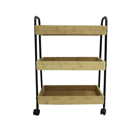 CARRINHO ORGANIZADOR MULTIUSO DE BAMBU C/ 3 PRATELEIRAS E RODAS DE PLÁSTICO - BF4096-A