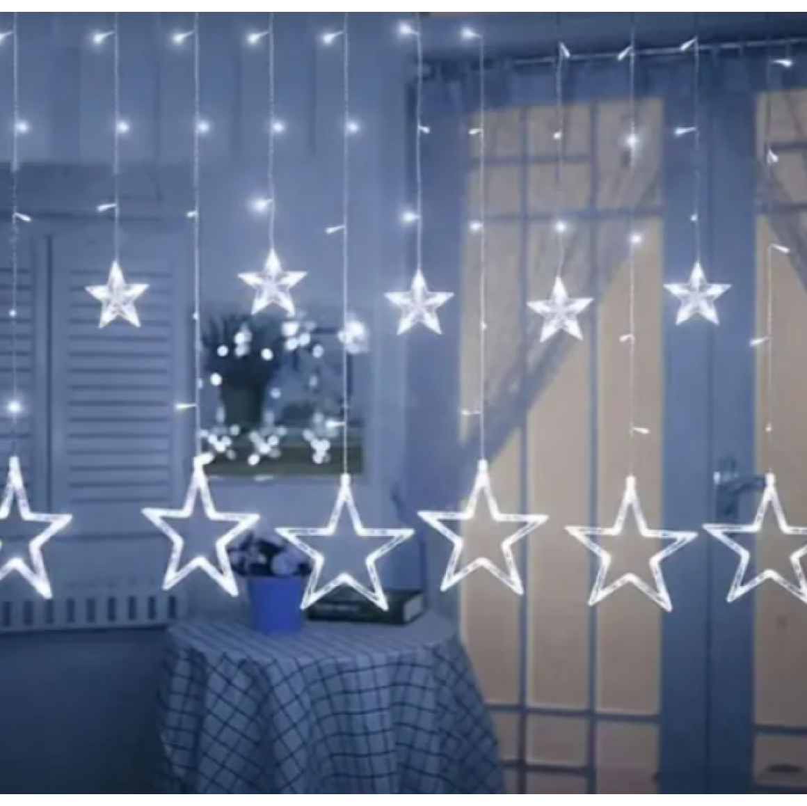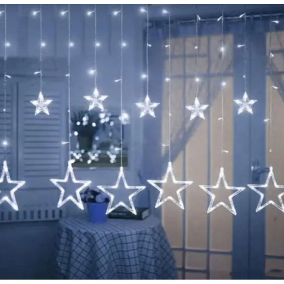 A cascata possui um total de 138 Leds distribuídos ao longo do seu comprimento e com estrelas nas pontas o que . Os leds BR (branca) significa que emitem uma luz branca.