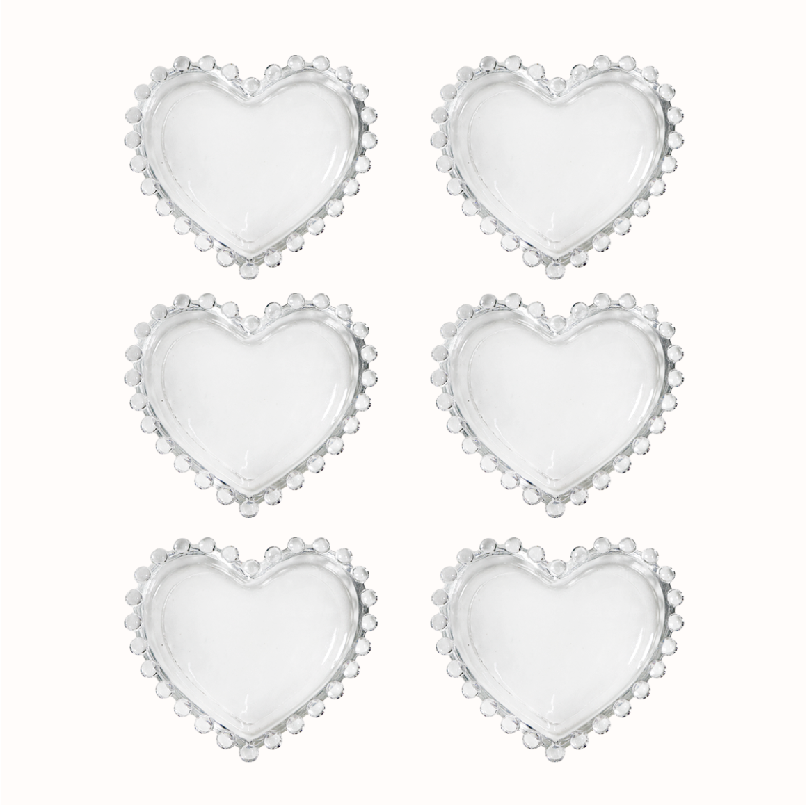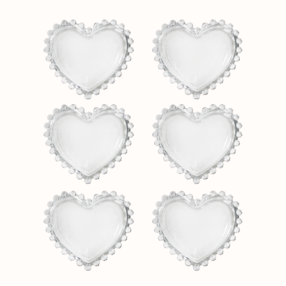 CENTRO DE MESA DE VIDRO COM DETALHES NA BORDA FORMATO CORAÇÃO COM 6 PEÇAS-3554.