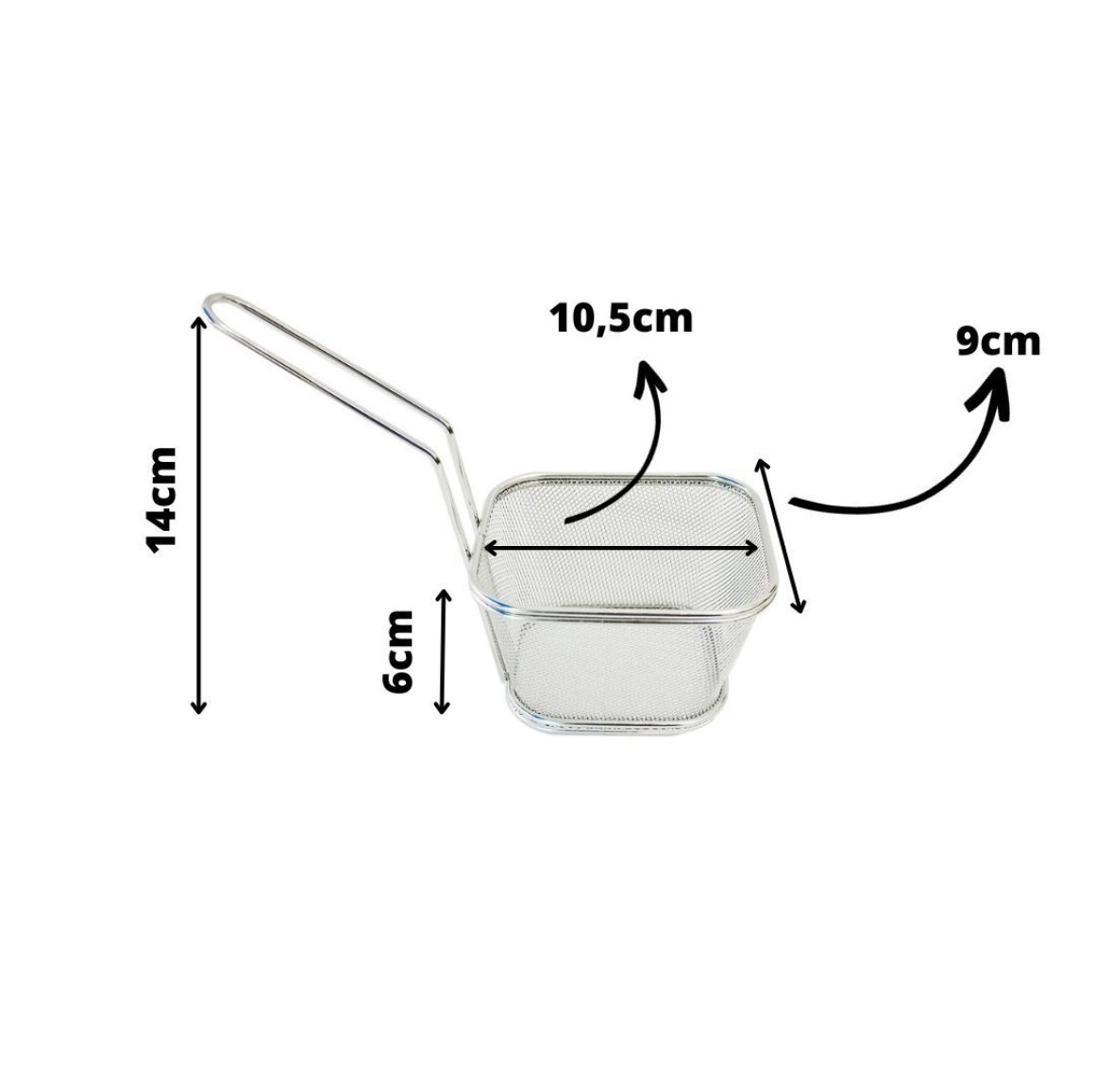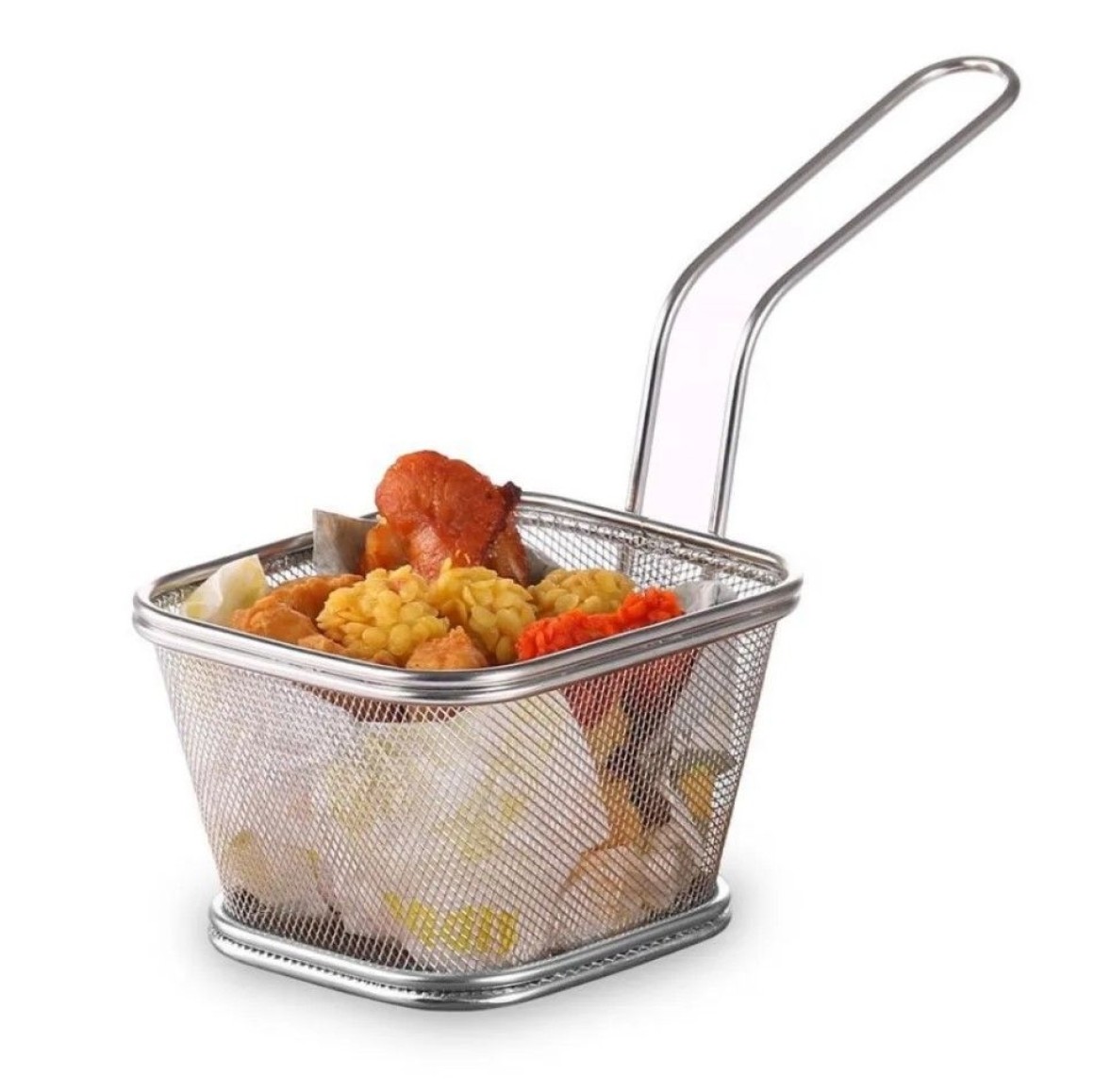 CESTA DE PETISCO QUADRADA DE AÇO INOX 6X9X10.5CM - TRC8513