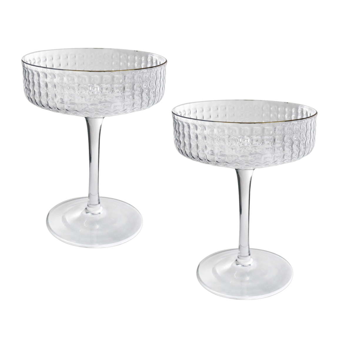 CONJUNTO 02 TAÇAS COUPE DE VIDRO COM BORDA DOURADA LINHA SPIKE 200ML - 29291