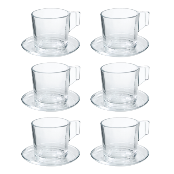 CONJUNTO DE 06 XÍCARAS PARA CHÁ COM PIRES DE VIDRO SODO CALCICO 125ML - 5181