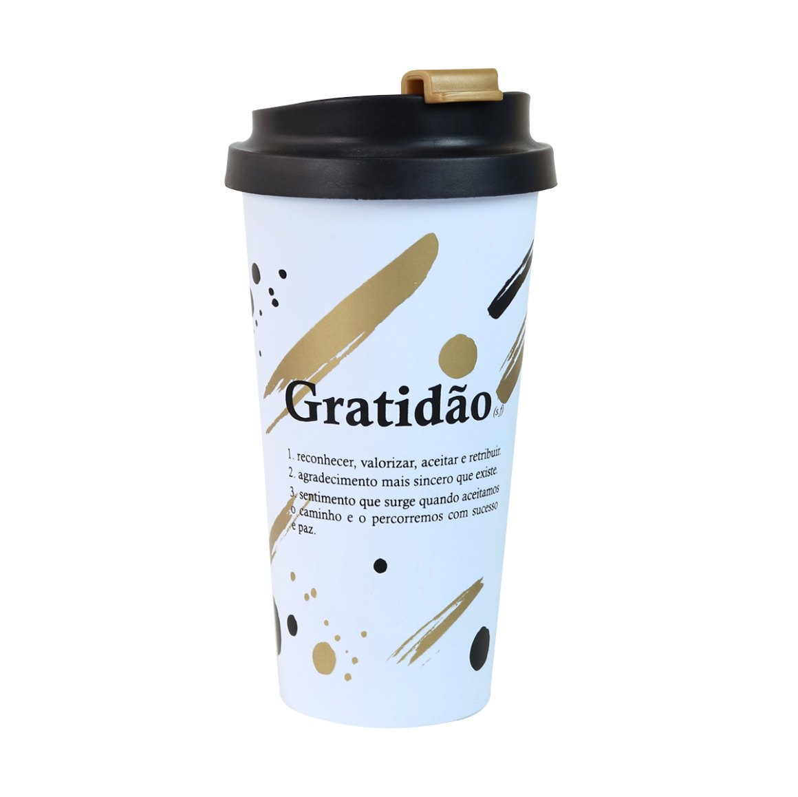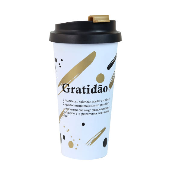 COPO TÉRMICO COM FRASE GRATIDÃO DE PLÁSTICO 500 ML - CS0055-B