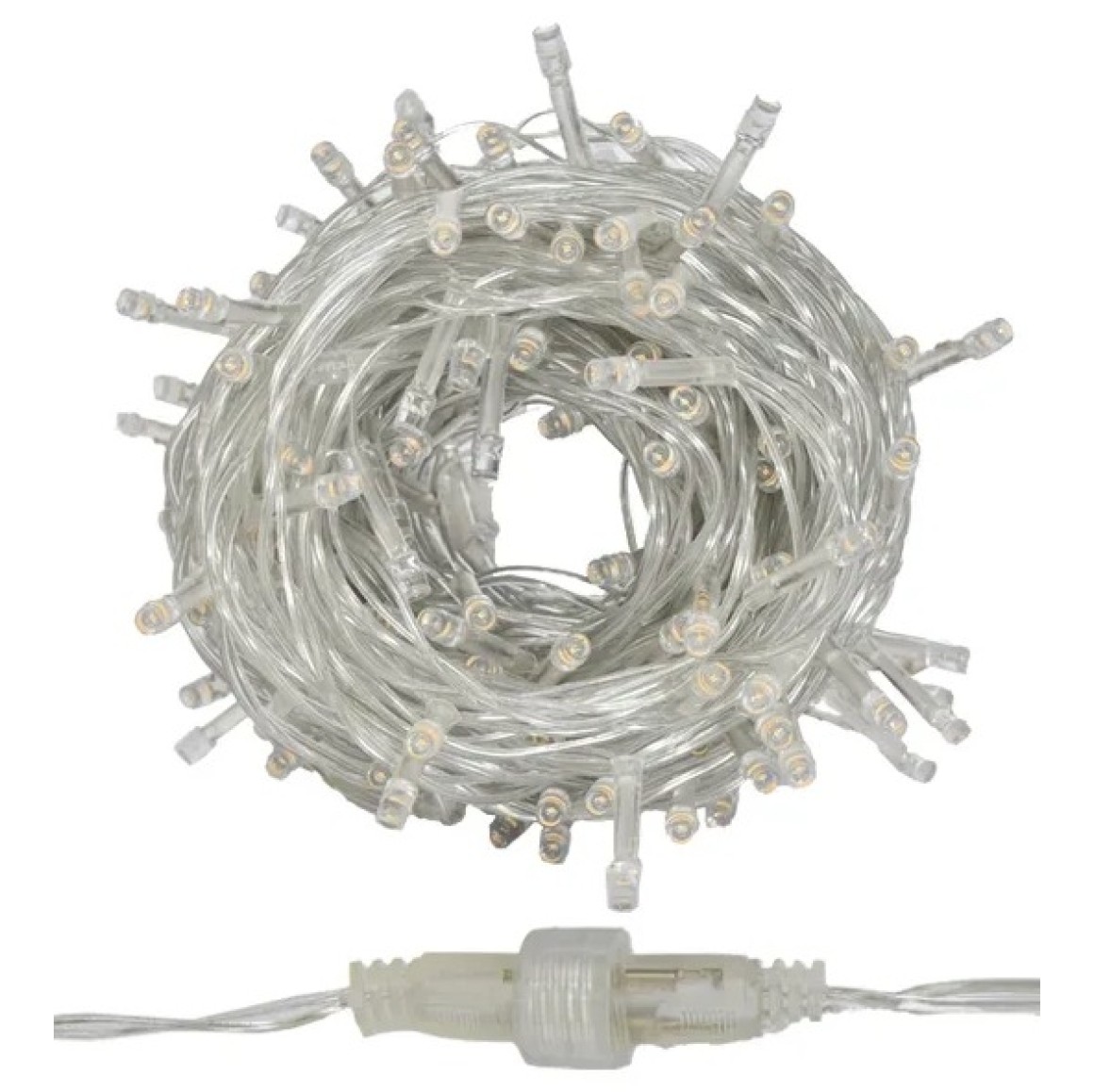 CORDÃO 100 LEDS FIXO WARM FIO TRANSPARENTE TOM. M/MF 127V - 19013