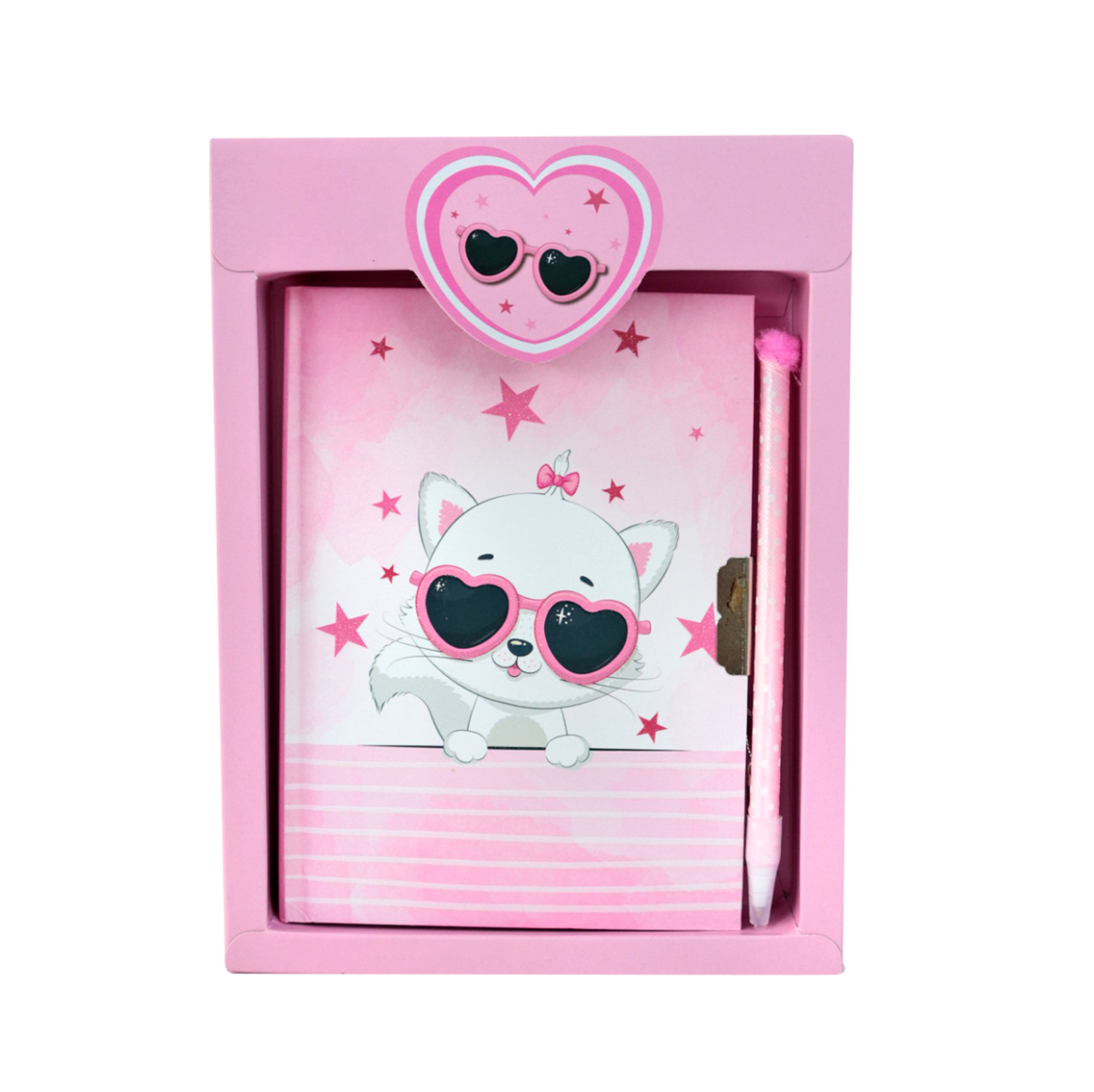 Lindo diário gatinho com cadeado. Com ele você pode escrever sobre seus dias .