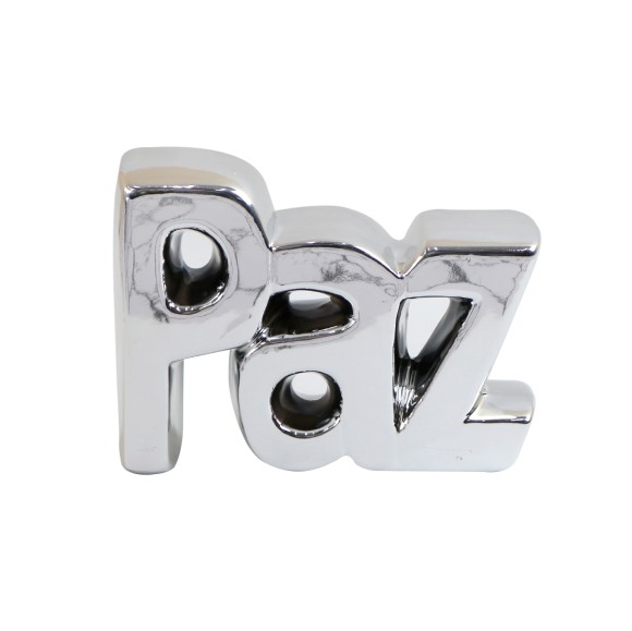 ENFEITE DECORATIVO COM A PALAVRA PAZ DE CERAMICA 13,5X3,7X10CM - MG5180-PTA