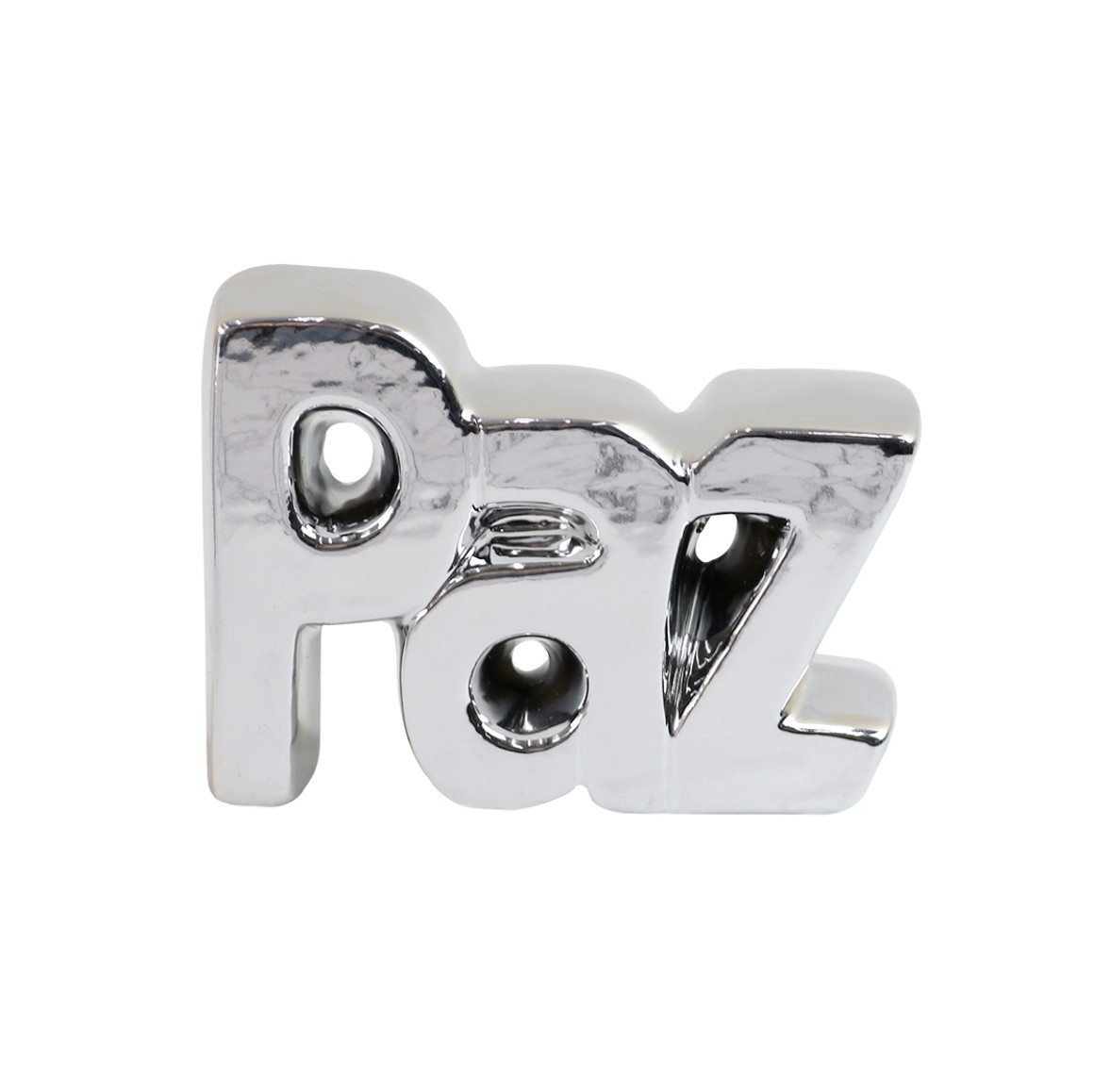 Enfeite decorativo com a palavra Paz ideal para compor a decoração do seu lar.