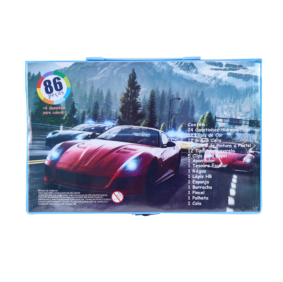 ESTOJO ESCOLAR 86 PECAS MENINO CARRO VERMELHO - MT86BOY-VM