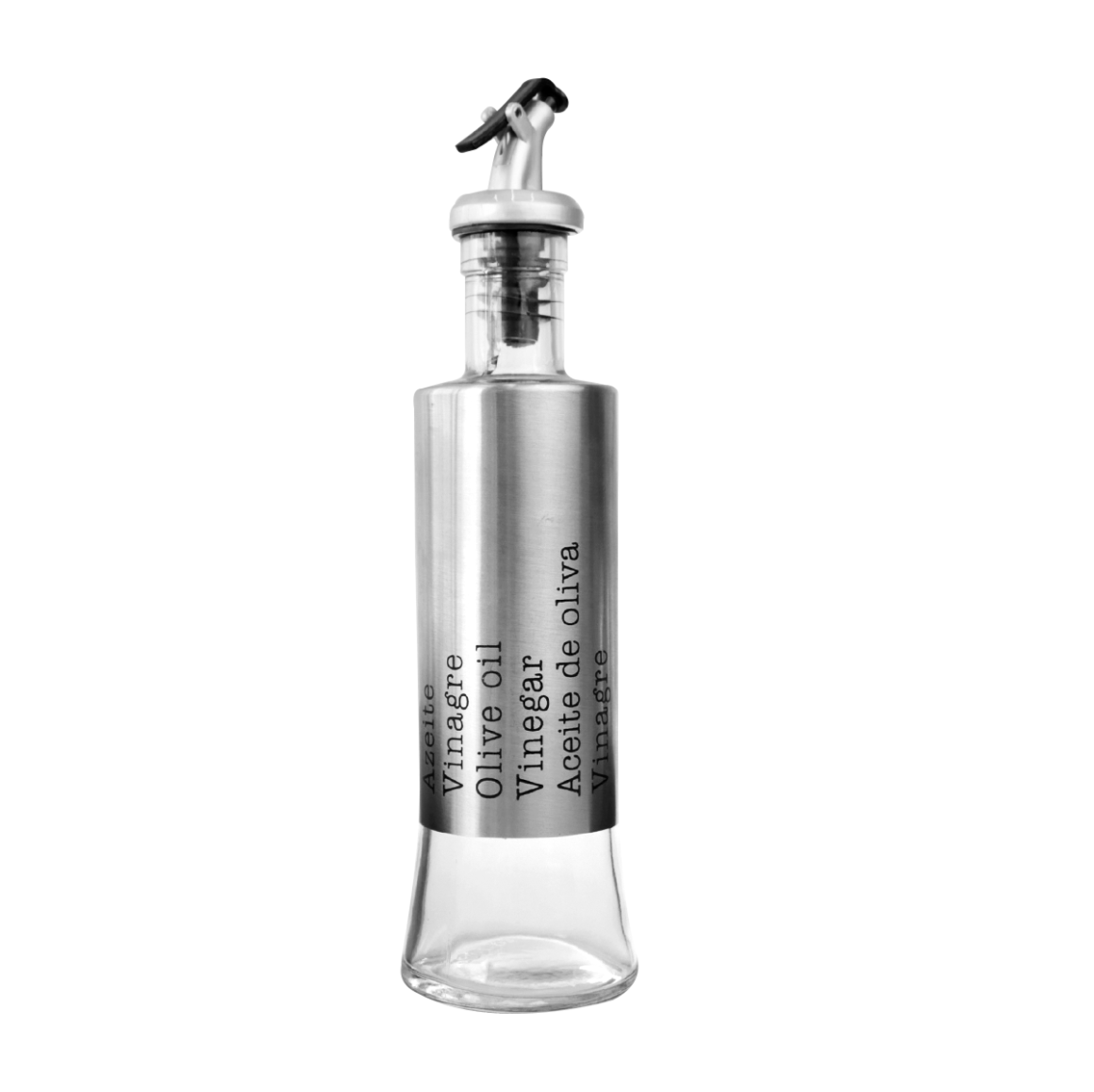 GALHETEIRO AZEITE OU VINAGRE GARRAFA EM VIDRO REVESTIDA EM INOX COM FRASE 300ML - CZ19013