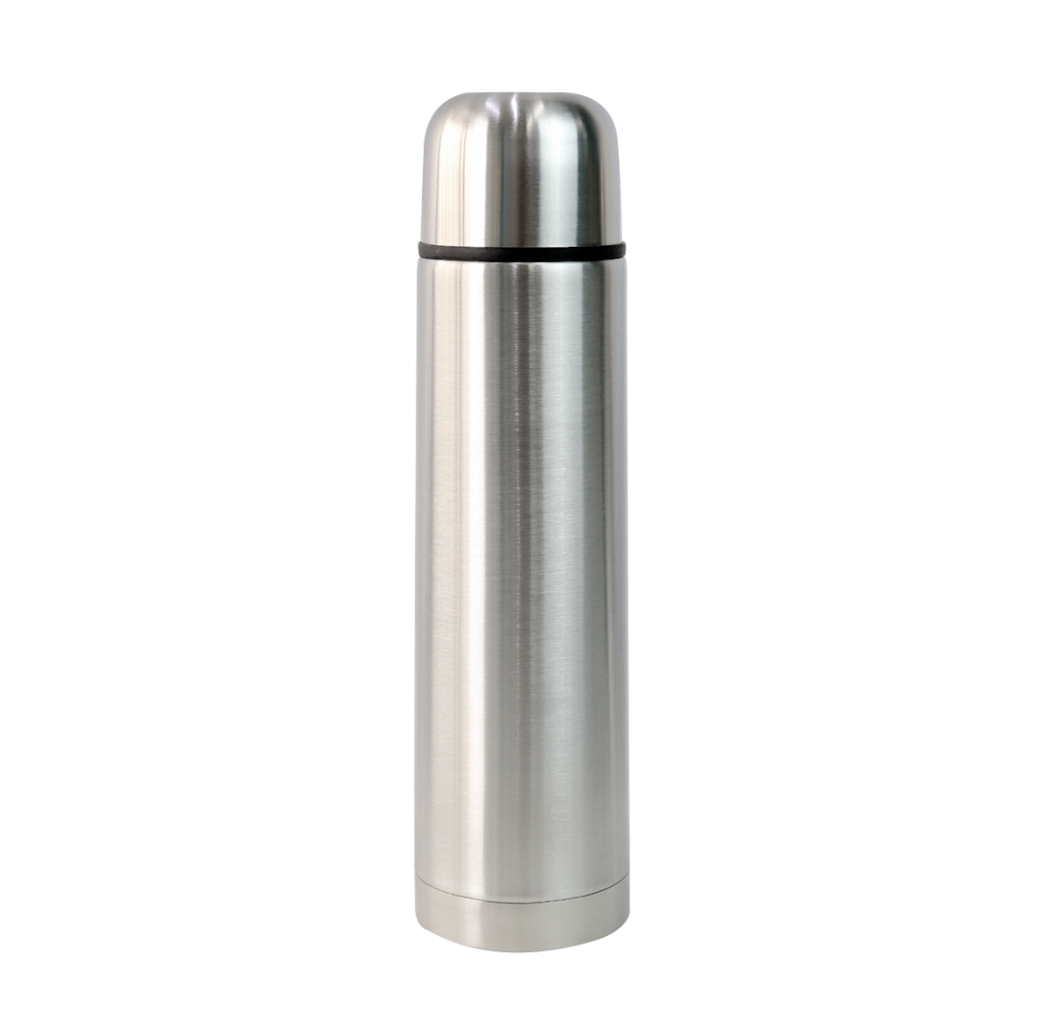 Garrafa isotérmica inquebrável em aço inox. Possui fechamento por vácuo. A tampa pode ser utilizada como caneca.