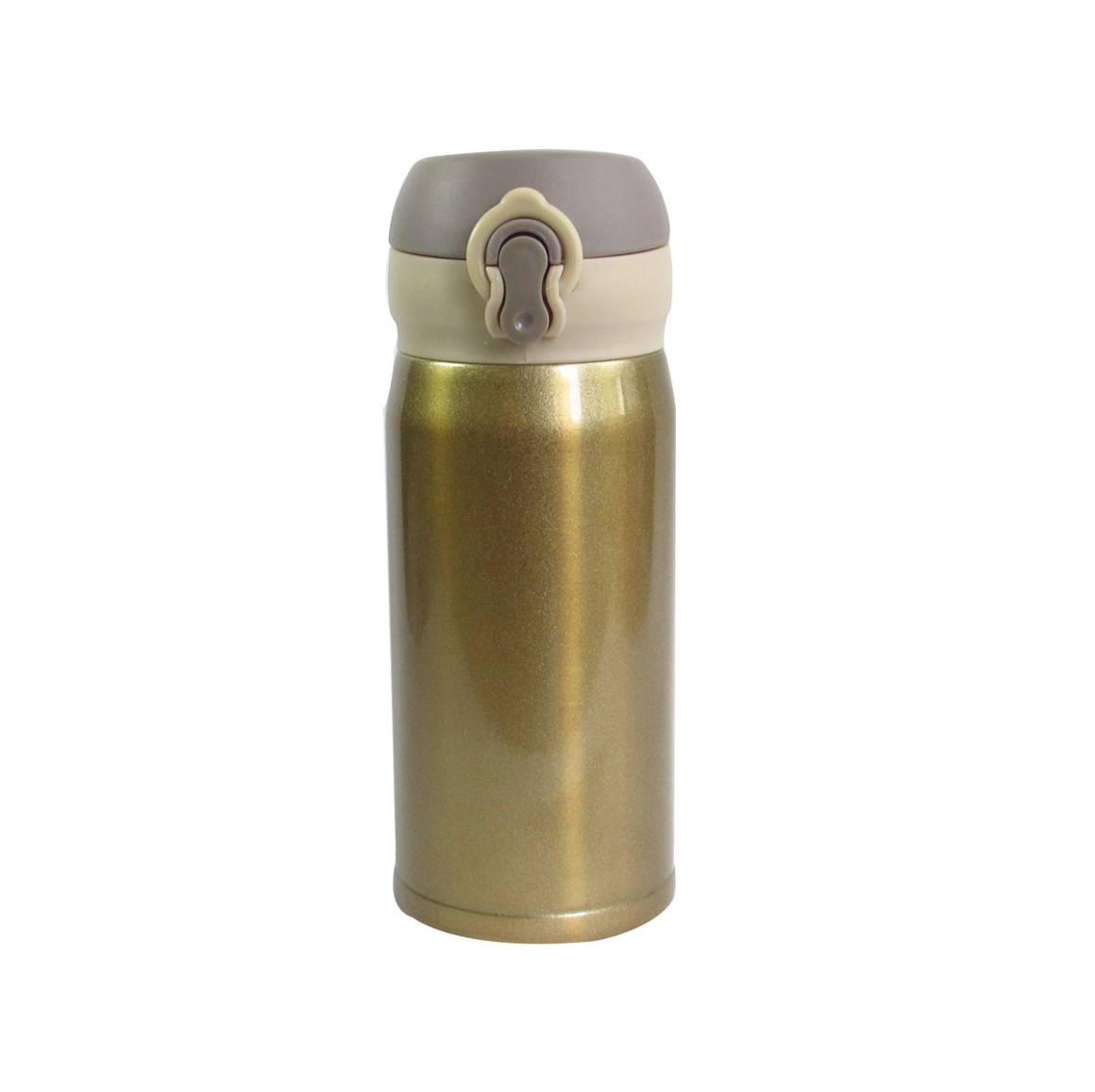 GARRAFA TÉRMICA 350ML AÇO INOX TRAVA VACUUM CUP DOURADA - HG62336-DOU