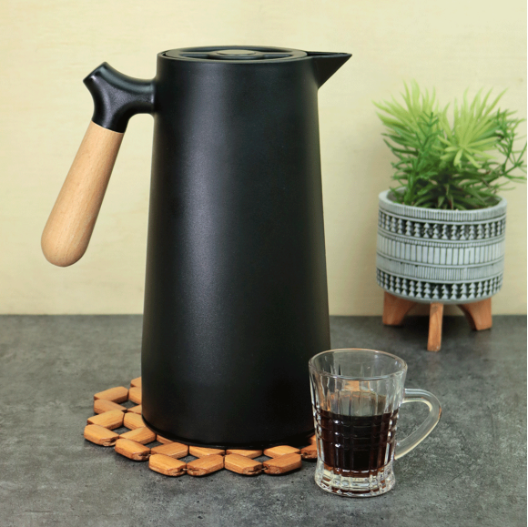 GARRAFA TÉRMICA POTTY PRETA COM CABO MADEIRA 1 LITRO - D1036.