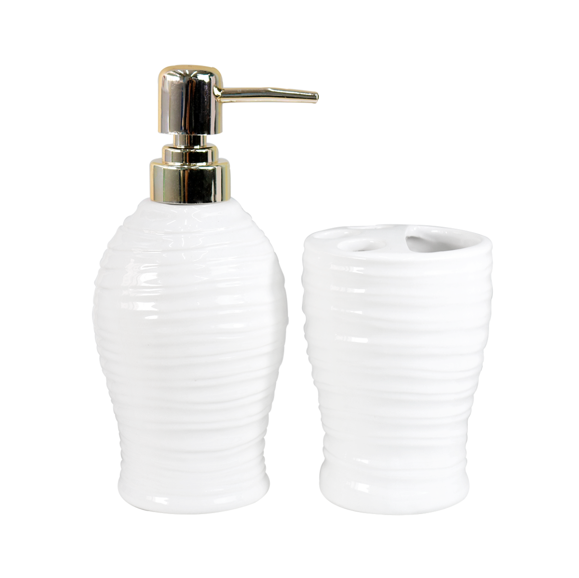 JOGO DE BANHEIRO DE CERÂMICA COM 02 PEÇAS E DOSADOR DOURADO - 98541D-BR