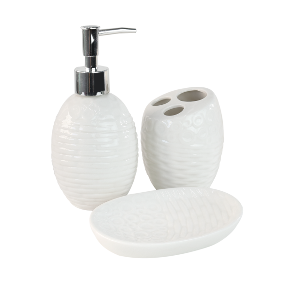 JOGO DE BANHEIRO DE PORCELANA COM 3 PEÇAS 350ML - SXHW5081.