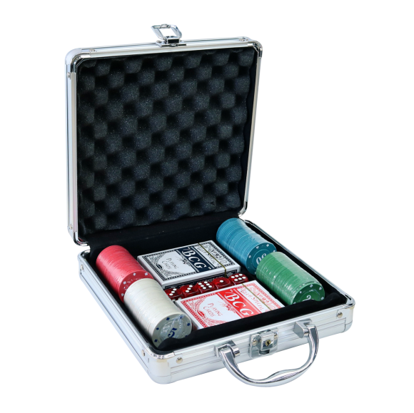 A maleta de Poker com chave é um conjunto completo para os amantes do jogo de cartas. Feita de material durável, como alumínio resistente, a maleta possui um acabamento elegante e vem com uma chave para travá-la, garantindo a segurança e a privacidade dos componentes internos. O conjunto também contém cinco dados que são usados para jogar diferentes variações de poker ou outros jogos. Eles são feitos de plástico e têm um tamanho padrão. A maleta contém 100 fichas de poker (25 de cada) e têm diferentes denominações, permitindo que os jogadores façam apostas em valores variados. Além disso o conjunto inclui dois baralhos completos de 52 cartas cada um. Os baralhos são feitos de papel de alta qualidade, com um acabamento suave e deslizante, permitindo uma fácil distribuição e manuseio das cartas. As faces das cartas têm designs clássicos e detalhados, facilitando a identificação de cada carta.