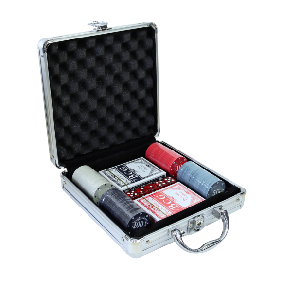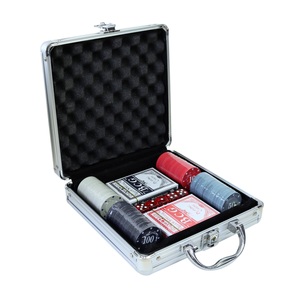 A maleta de Poker com chave é um conjunto completo para os amantes do jogo de cartas. Feita de material durável, como alumínio resistente, a maleta possui um acabamento elegante e vem com uma chave para travá-la, garantindo a segurança e a privacidade dos componentes internos. O conjunto também contém cinco dados que são usados para jogar diferentes variações de poker ou outros jogos. Eles são feitos de plástico e têm um tamanho padrão. A maleta contém 100 fichas de poker (25 de cada) e têm diferentes denominações, permitindo que os jogadores façam apostas em valores variados. Além disso o conjunto inclui dois baralhos completos de 52 cartas cada um. Os baralhos são feitos de papel de alta qualidade, com um acabamento suave e deslizante, permitindo uma fácil distribuição e manuseio das cartas. As faces das cartas têm designs clássicos e detalhados, facilitando a identificação de cada carta.