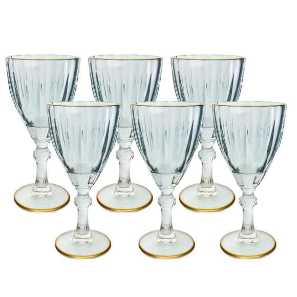 JOGO DE TAÇA DE VIDRO COM BORDA DOURADA 6PÇS 210ML - CA16187-CZCL