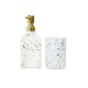 Jogo de Banheiro em vidro com estampa marmorizada e tampa cromado de plástico.
