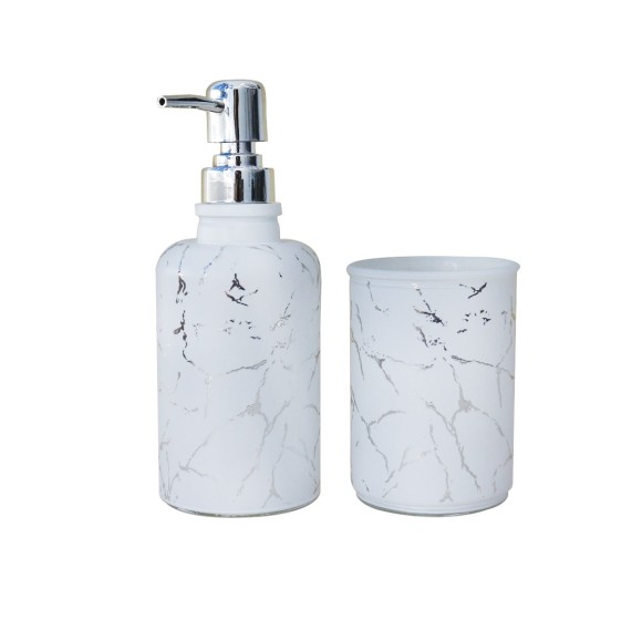 JOGO PARA BANHEIRO DE VIDRO ESTAMPA MARMORIZADA 02 PÇS - SXYZ5107-PTA