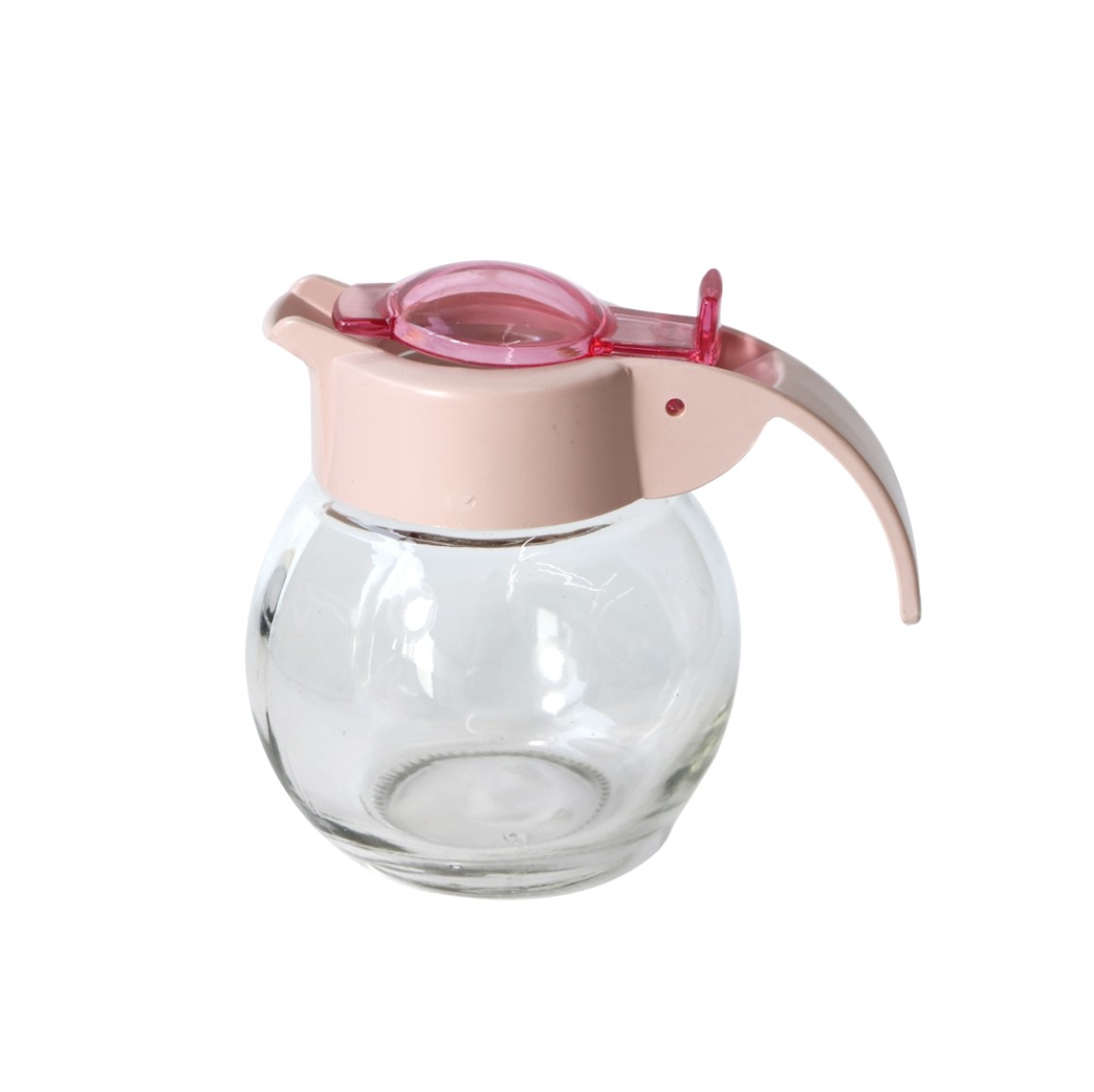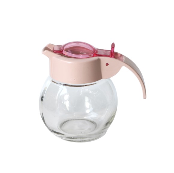 Meleira de vidro com pegador e tampa feito em plástico possui capacidade de 150ml.