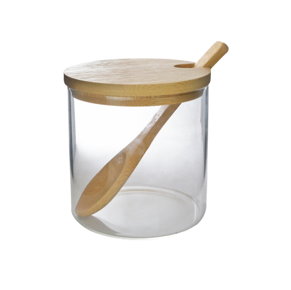 PORTA CONDIMENTO DE VIDRO COM TAMPA E COLHER DE BAMBU 280ML - DT6616