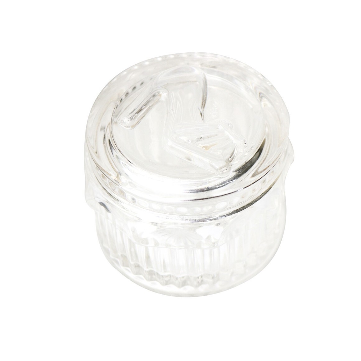 PORTA JOIAS REDONDO DE VIDRO COM TAMPA EM DETALHES 7X6CM - PJVD02