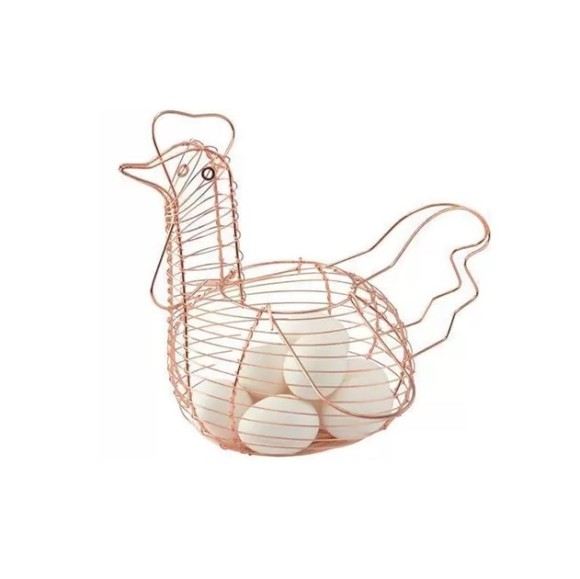 PORTA OVOS DE METAL EM FORMATO DE GALINHA GOLD ROSE 27X24CM – 97567