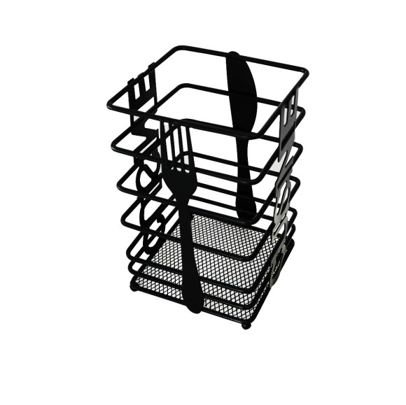 PORTA TALHER DE METAL ARAMADO PRETO QUADRADO 16X10CM - 2405