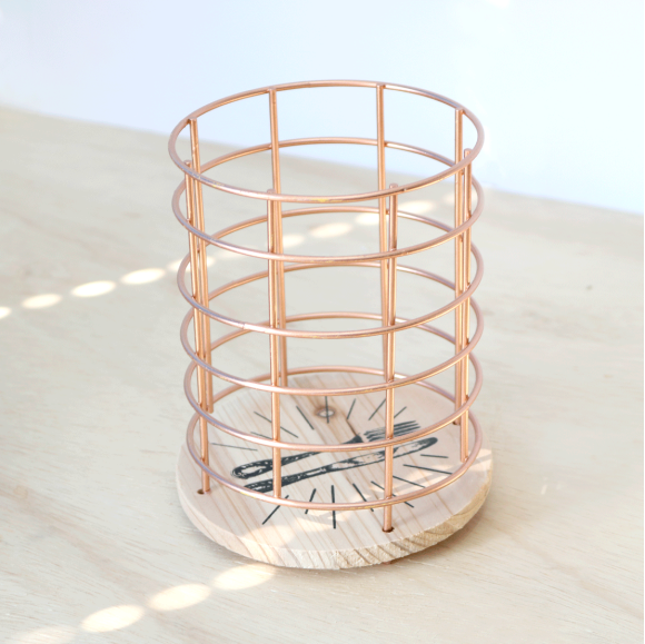 PORTA TALHER DE METAL ARAMADO REDONDO COM BASE EM MADEIRA 16X12CM - FERSC09-GR