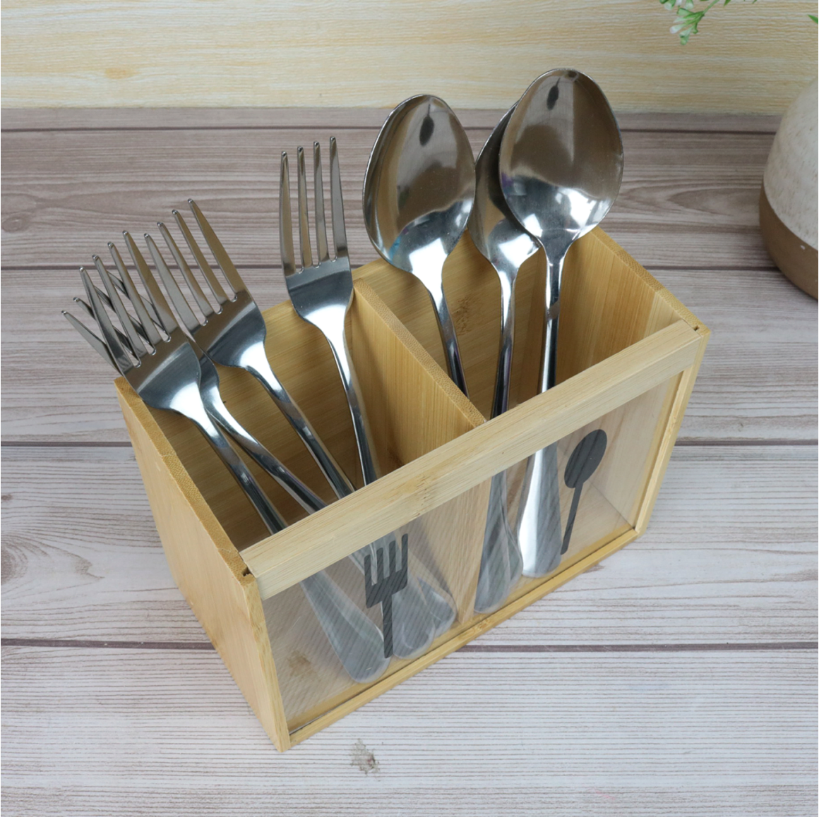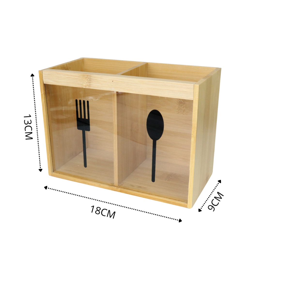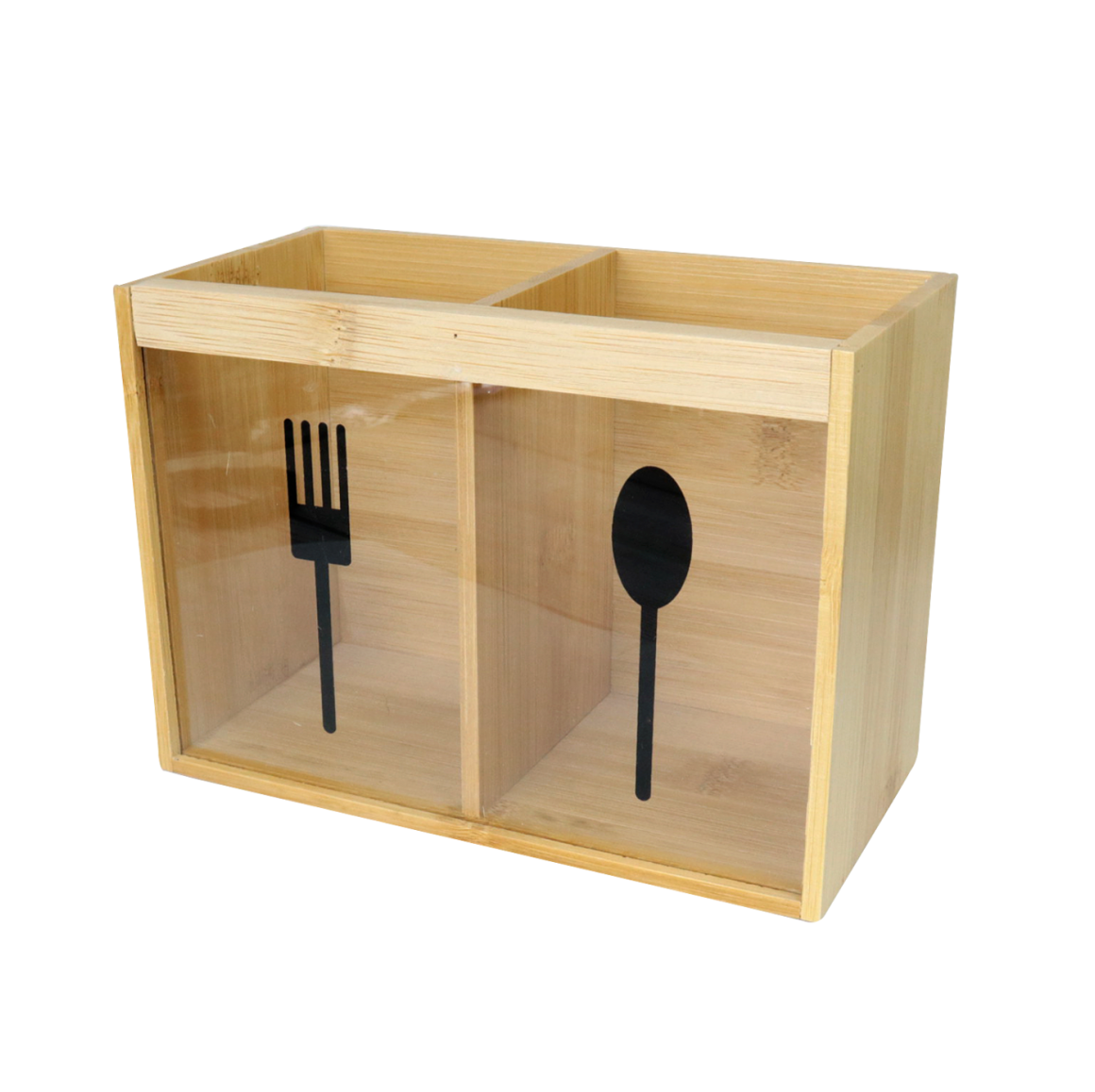 Beleza e funcionalidade em um só produto. Este porta-talheres é confeccionado em bambu, material durável, ecológico e de acabamento refinado, com frente em acrílico transparente que permite visualizar facilmente os utensílios armazenados. Ideal para organizar talheres de forma prática e elegante, seja sobre a bancada ou dentro de armários. Uma solução charmosa e eficiente para manter a cozinha sempre em ordem.