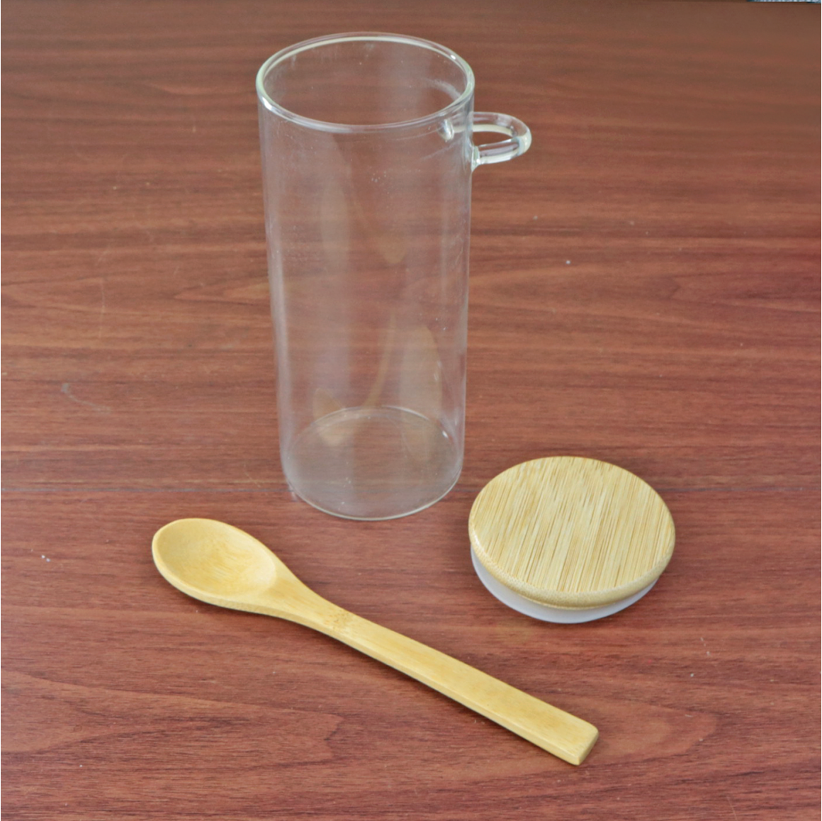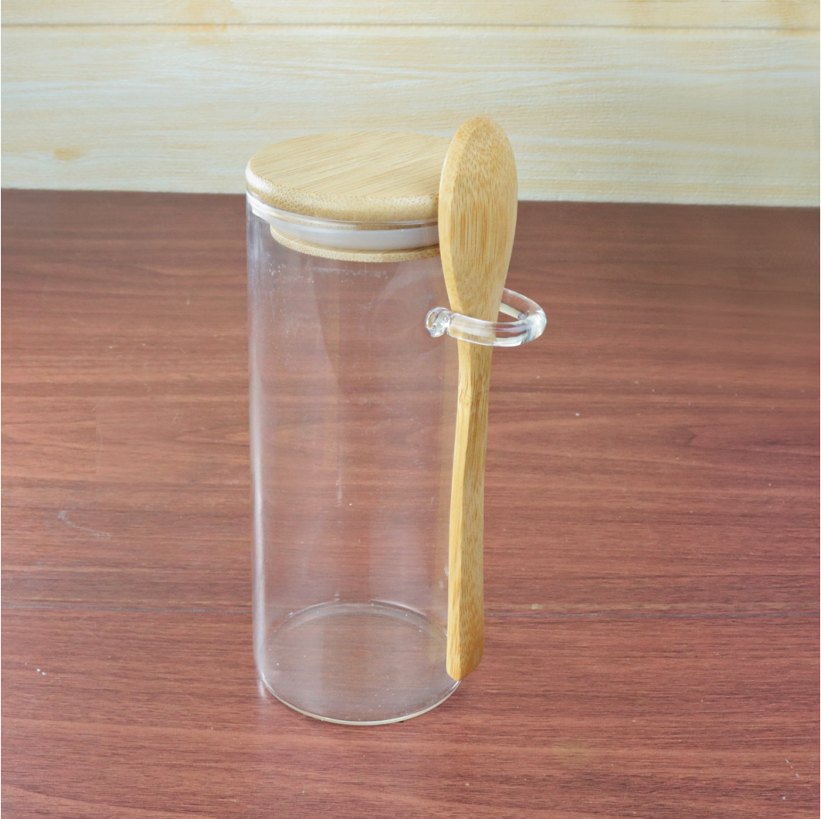 POTE HERMÉTICO DE VIDRO COM TAMPA E COLHER DE BAMBU 380ML - DT6612
