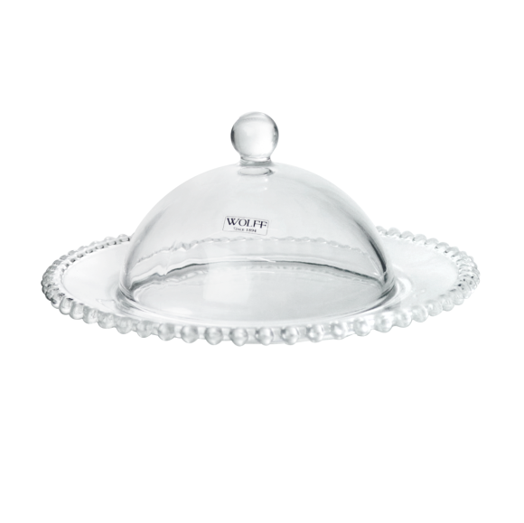 Queijeira de modelo Pearl da marca Wolff tem design elegante e requintado ao servir os seus queijos no café da manhã. Conta com um prato com tampa altamente sofisticado.