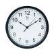 O Relógio de parede de plástico com borda na cor preta é uma peça versátil