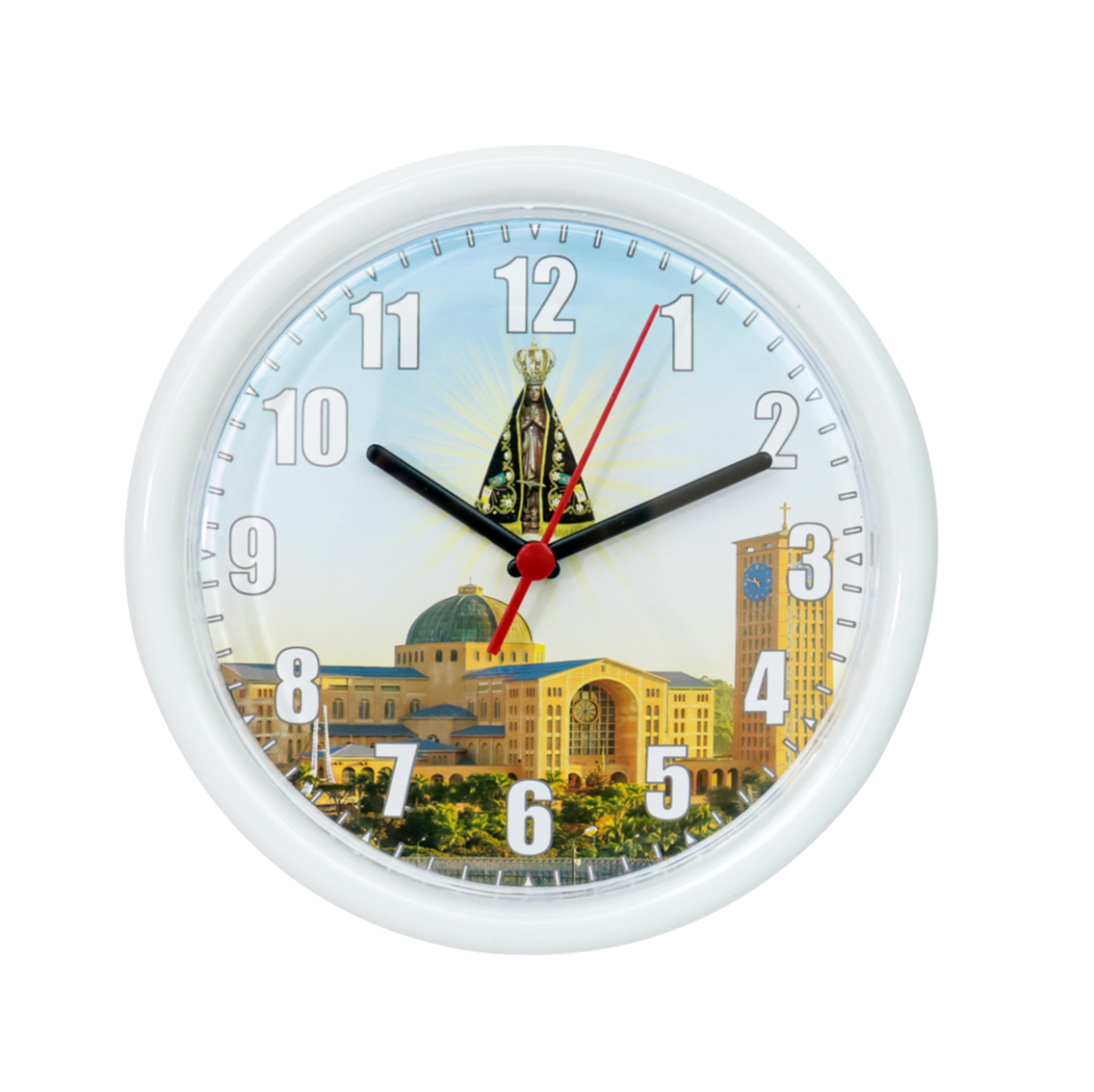 Um relógio de parede de poliestireno de 24 cm a pilha é um relógio de parede compacto e funcional, projetado para ser colocado em uma parede. O poliestireno é um material leve e durável, frequentemente utilizado na fabricação de objetos domésticos.