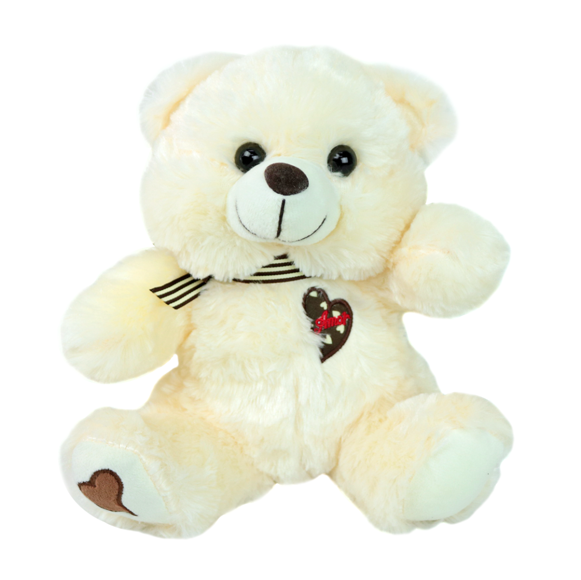 URSO DE PELUCIA DE POLIESTER COM LAÇO 25CM - FE6918-CREME